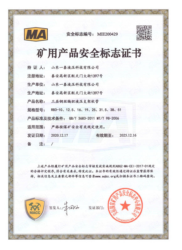 山東一泰液壓科技有限公司,坐落于山東省泰安市國家高新技術產業開發區配天門大街1397號,總占地面積6萬6千多平方米,總建筑面積4萬多平方米。公司注冊資金7500萬元,資產值3億元。公司始終專注于超高壓石油鉆探軟管、柔性節流壓井軟管、井控高壓耐火軟管總成、高端機械軟管、以及礦用液壓管體等配套產品的研發和生產。產品廣泛用于陸地和海洋石油鉆井、勘探、開采、輸送等領域;同時還為軍用系列、大型船舶系列提供了優質產品的供應保障和信任服務。